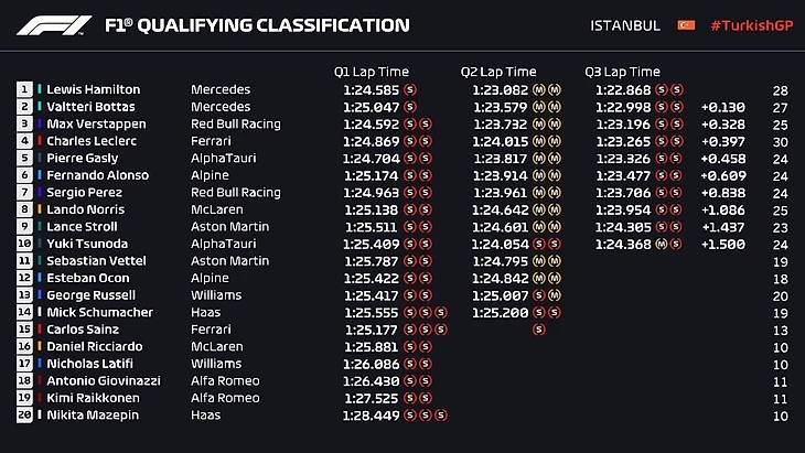 * После квалификации Льюис подписал шину Pirelli, что принято делать тому, кто взял поул, но так как он не стартовал с этой позиции, то эта шина перешла Валттери уже с подписью Хэмилтона и надписью: «Для Валттери. Наслаждайся призом за поул. Твой круг тоже был классным». Рядом поставив цифру 102. Это может отсылать к тому, что официально у Льюиса пока 101 поул в карьере (а у Боттаса теперь 18).