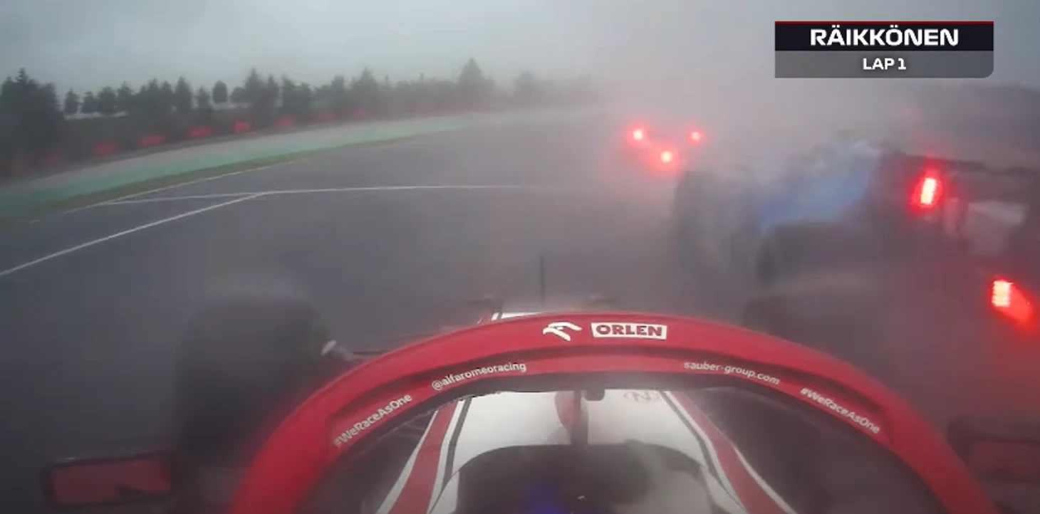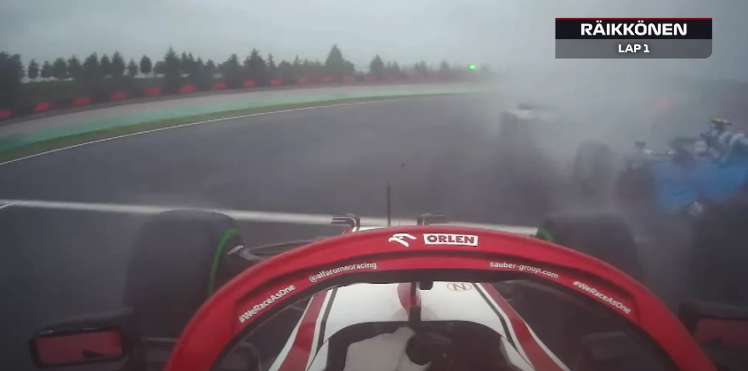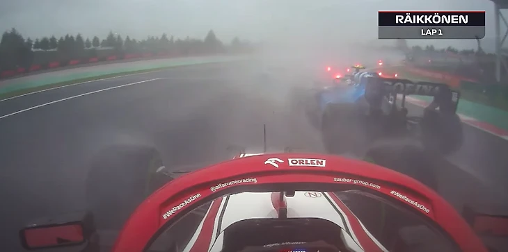 Райкконен технично увернулся от аварии в первом повороте на мокром треке – и тут же обогнал троих. Оценка «Ф-1» – 100 баллов