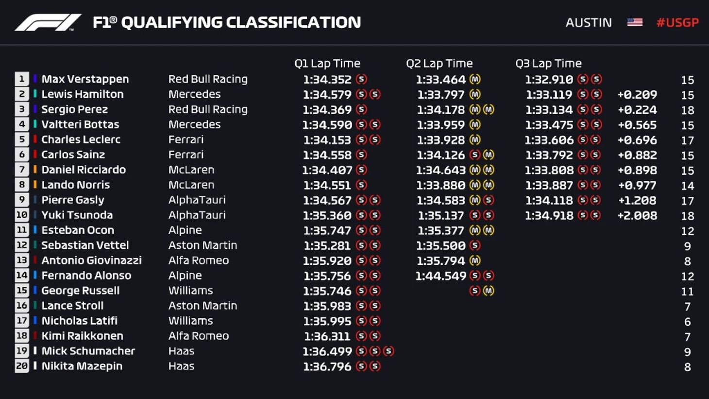 Так как некоторые гонщики имеют штрафные санкции за смену двигателя или частей двигателя, то стартовая решетка в Остине выглядела таким образом: