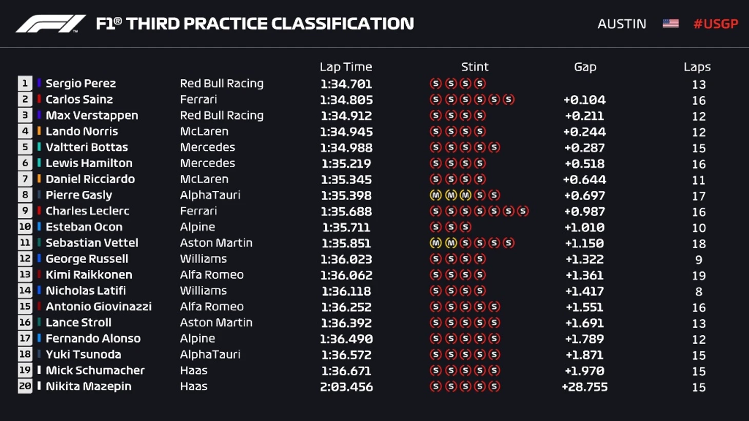 В третий сегмент все, кроме Цуноды, смогли выйти на шинах - medium. Должна отметить, что вышли в полном составе 5 команд: Red Bull, Mercedes, McLaren, Ferrari и Alpha Tauri. Трибуны взрывались от счастья, видя, что Перес после первой попытки занял 1-ую строчку, но сможет ли он блеснуть и показать такой же результат во второй раз? Под конец 2-ого захода начал накапливать дождь над некоторыми участками трассы, но это не повлияло на борьбу за поул. Лучшее время показывает Макс и завоевывает 12-ый поул в карьере, 9-ый в сезоне, а его напарник не отстает и забирает 3-ю позицию! Трибунами можно гордиться, ведь их радость слышали все, кто смотрел квалификацию.