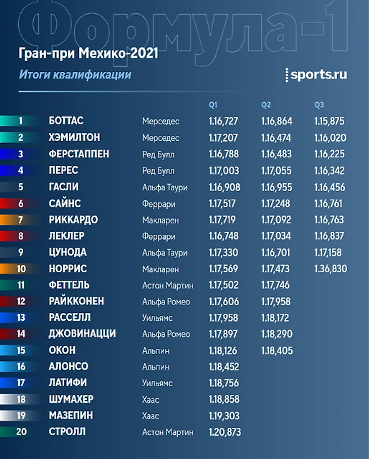 Боттас порвал всех в квале в Мексике, Ферстаппен уступил Хэмилтону