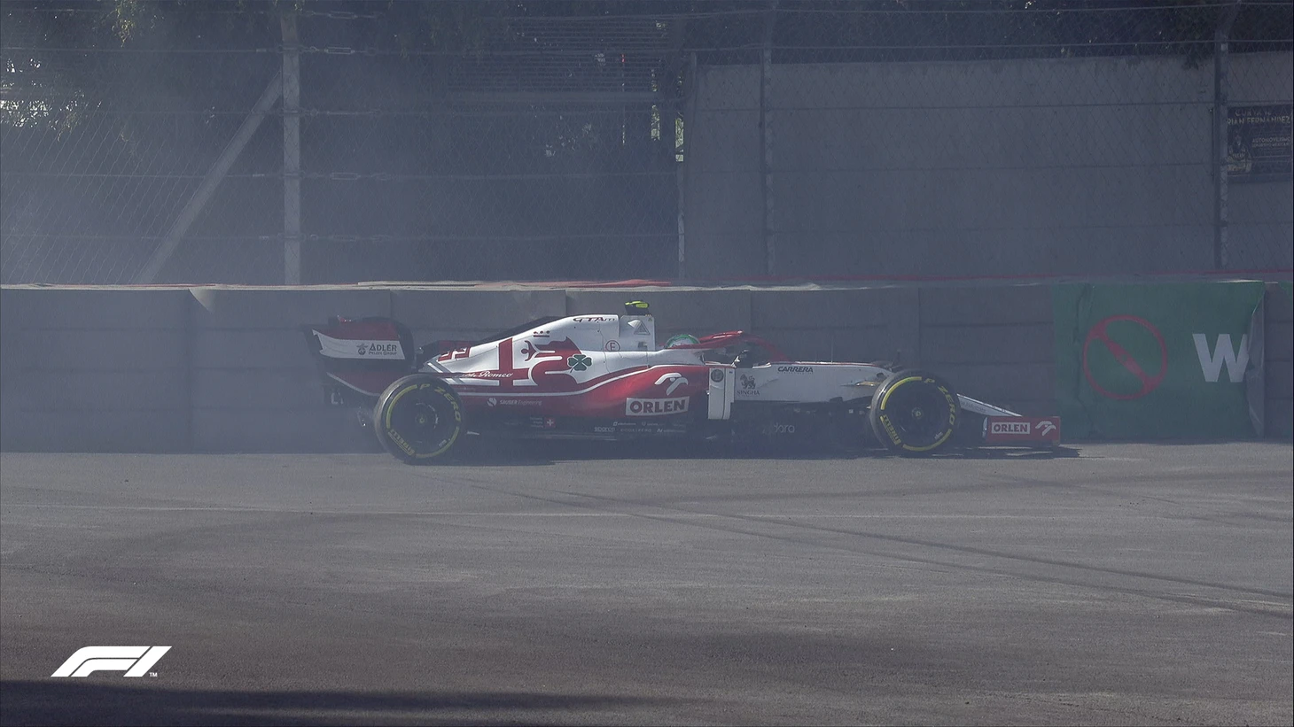 Канадец потерял сцепление в последнем повороте на пыльной части трека – и влетел в отбойники.