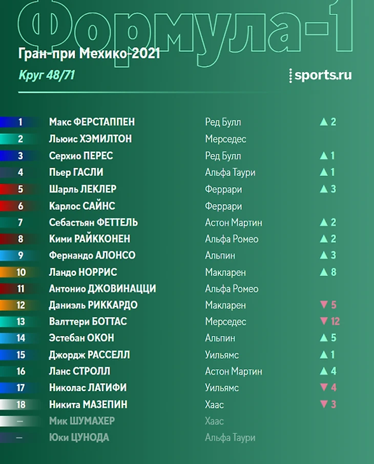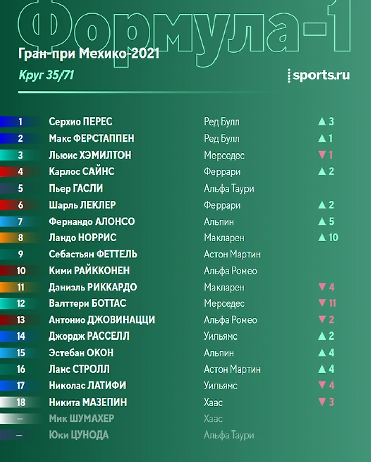 Очередной образцовый пит-стоп от «Ред Булл» – Перес возвращается на трассу третьим,в 10 секундах позади Хэмилтона. Теперь главный вопрос, как Серхио сможет реализовать преимущество более свежих относительно Хэмилтона шин.