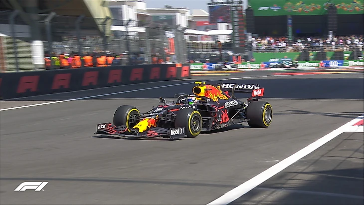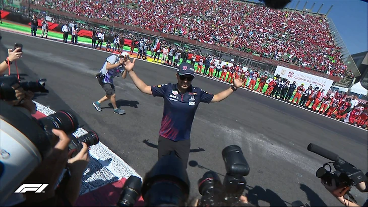 А Серхио Перес лидирует на домашнем Гран-при. Трибуны, понятное дело, в полном восторге.
