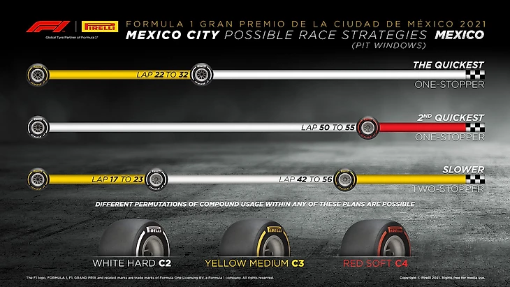 Предварительные расклады по тактике от «Пирелли». Предпочтительным называется вариант с одним пит-стопом и стратегией «медиум» – «хард». Хотя «хард» – «софт» при определенных обстоятельствах тоже может очень неплохо сработать.
