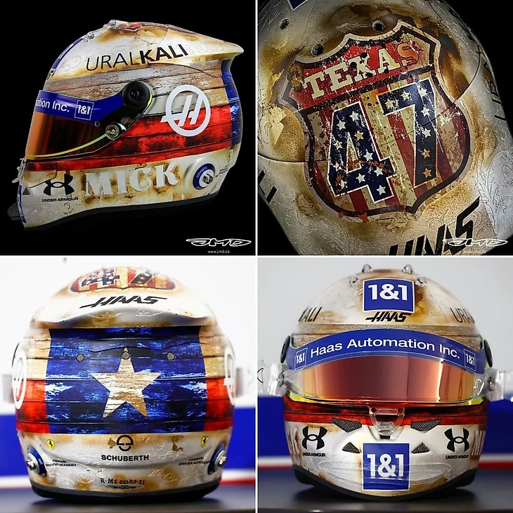 Для Мика Шумахера “Трасса Америк” - абсолютно новая. Непростой трек с кочками, на которые все чаще и чаще жалуются пилоты, не прощает ошибок. Но сами Соединенные Штаты для Мика не чужое место. Именно в Техасе у его семьи есть ранчо, да и команда, за которую выступает Шуми, базируется в Америке. В честь гонки в штате одинокой звезды многие пилоты подготовили специальные цвета на своих шлемах, и Мик не стал исключением: