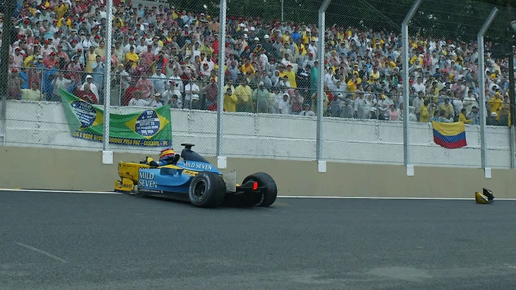Тем временем, Jordan Физикеллы, который на 53-м круге был вторым, перегрелся во время периода присутствия на трассе автомобиля безопасности, и, когда итальянец вернулся в боксы, машина уже была в огне (так что, в случае чего, Физикелла даже не смог бы продолжить гонку). Кими и Джанкарло заняли первые две ступеньки подиума, в то время как третье место пустовало – Алонсо находился в медицинском центре, где врачи обследовали его на предмет серьезных травм.