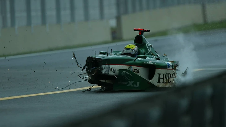 На 52-м круге Дэвид Култхард лидировал на McLaren, а затем шотландец заехал на пит-лейн. Оглядываясь назад, он, наверное, предпочел бы остаться на трассе, потому что сразу после этого Марк Уэббер потерял контроль над своей машиной на скорости больше 220 км/ч на главной прямой, врезался в отбойник и выбыл из борьбы. Вид остатков его Jaguar шокировал. Ошеломленный австралиец какое-то время сидел неподалеку и приходил в себя, а обломки от его машины были разбросаны по всей трассе.