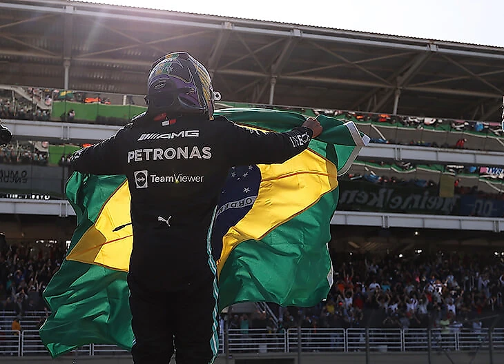 Гран-при Сан-Паулу завершился ярким проездом Льюиса Хэмилтона с бразильским зелено-желто-синим флагом в руке. Семикратный чемпион почтил память своего кумира – легендарного Айртона Сенны – в честь 30-летия первой победы «Волшебника» на родине.