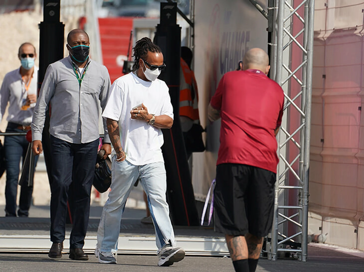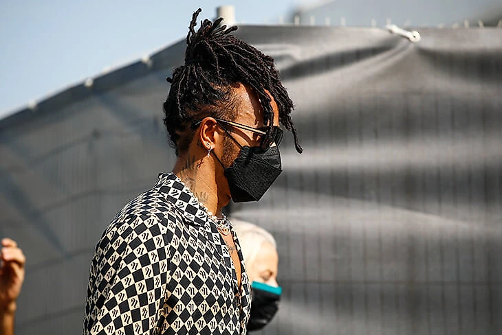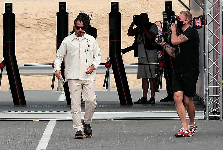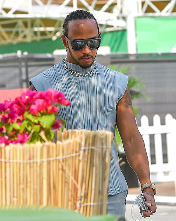 В день квалификации Хэмилтон пришел в паддок в нейтрально-кремовом кэжуал-костюме из весенней коллекции бренда Death To Tennis, которые не так давно вернулись к производству одежды после перерыва длиной в два года.