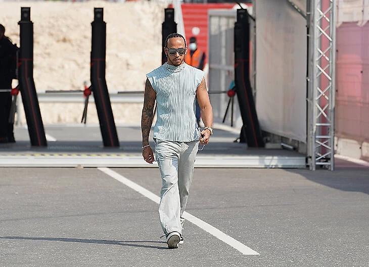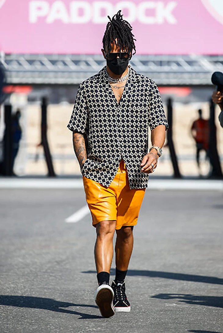 Хэмилтон ворвался на Гран-при Катара в образе мачо из 90-х. А потом сменил его на яркие кожаные шорты и кеды с мехом в +25