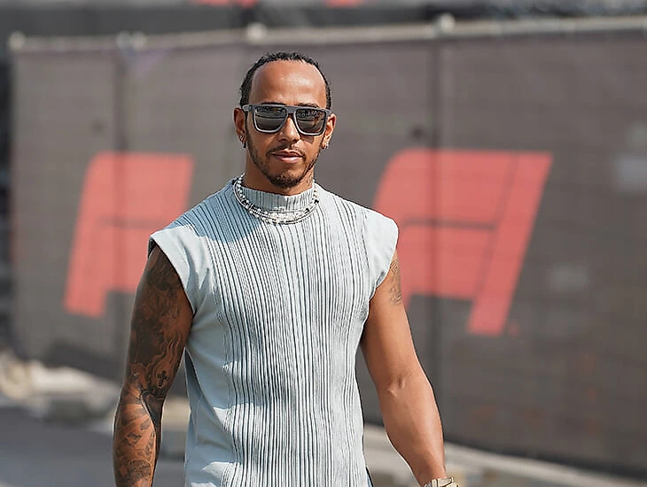 Цена рубашки с рисунком неизвестна, льняные брюки – 350$, на ногах – черный кожаные челси от Bottega Veneta – 950€ (одна из любимых моделей Хэмилтона).