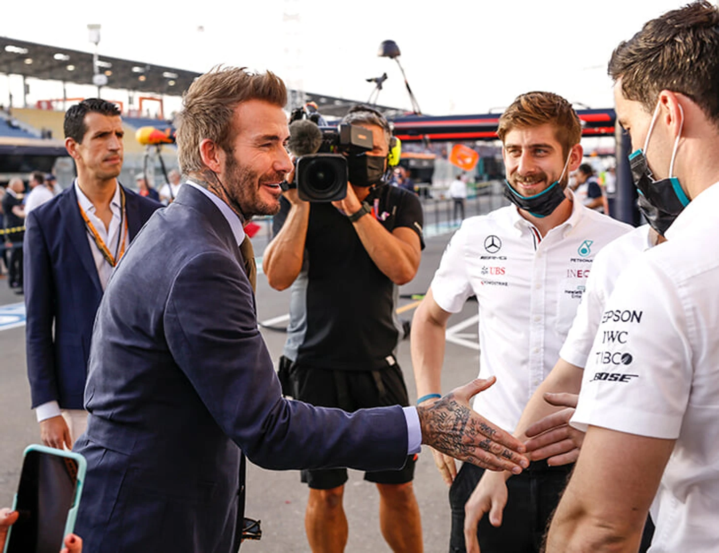 Бекхэм уже отрабатывает 150 млн от Катара – начал с «Ф-1»: удивился пит-стопу, обнимался с шейхами и позировал с организаторами
