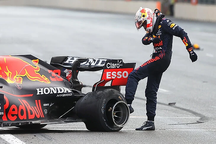 Ферстаппен бессильно пинает болид вместо победы в Баку. Виновата внезапно лопнувшая шина