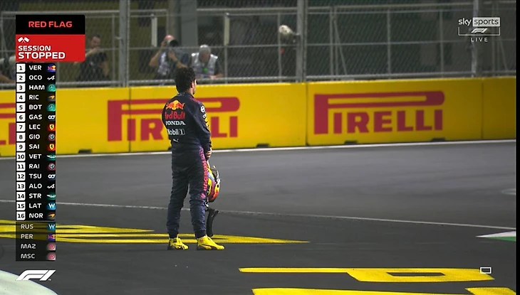 А второй пилот «Ред Булл» Серхио Перес вляпался в крэш и закончил гонку в стене, оставив команду без очков: его болид развернуло из-за контакта с Леклером, зажатого между Чеко и стеной.