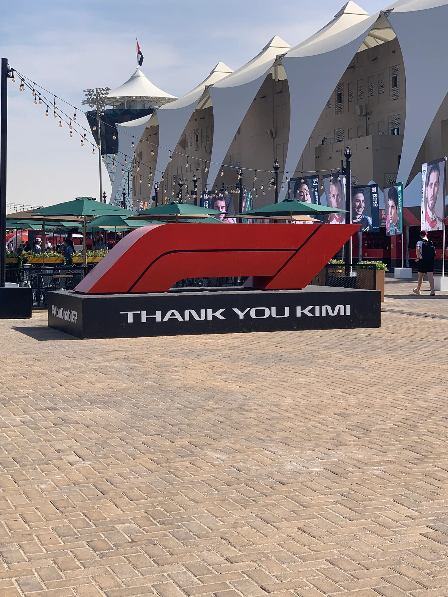 И паддок чествовал главного долгожителя (у Кими рекорд по количеству гонок – 351+1 в эти выходные): в самом начале на центральной площади установили такую красота: «Спасибо, Кими».