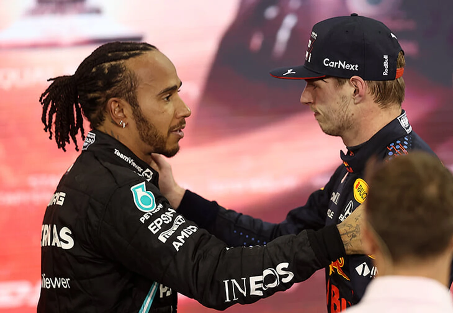 Фото дня: Хэмилтон поздравляет Ферстаппена с титулом в «Ф-1». Макс только что сверг Льюиса