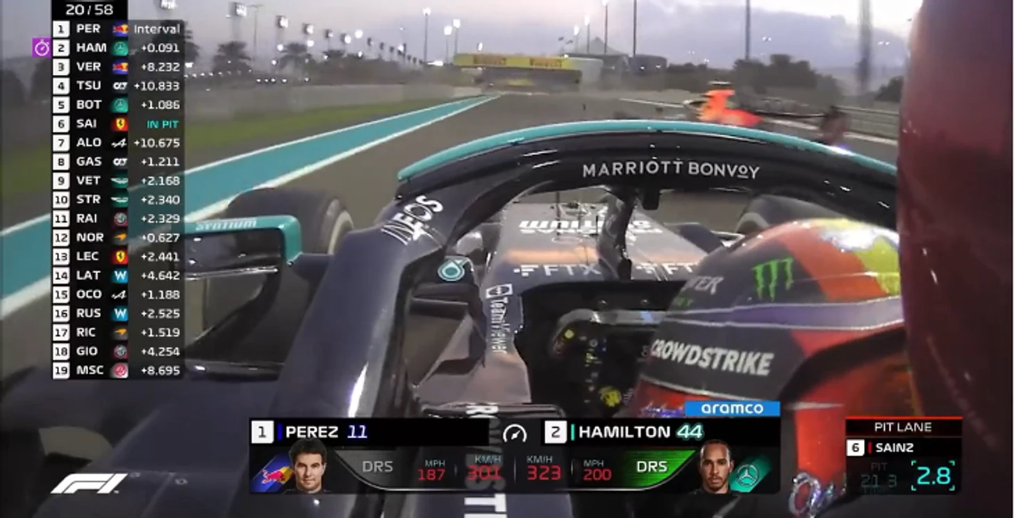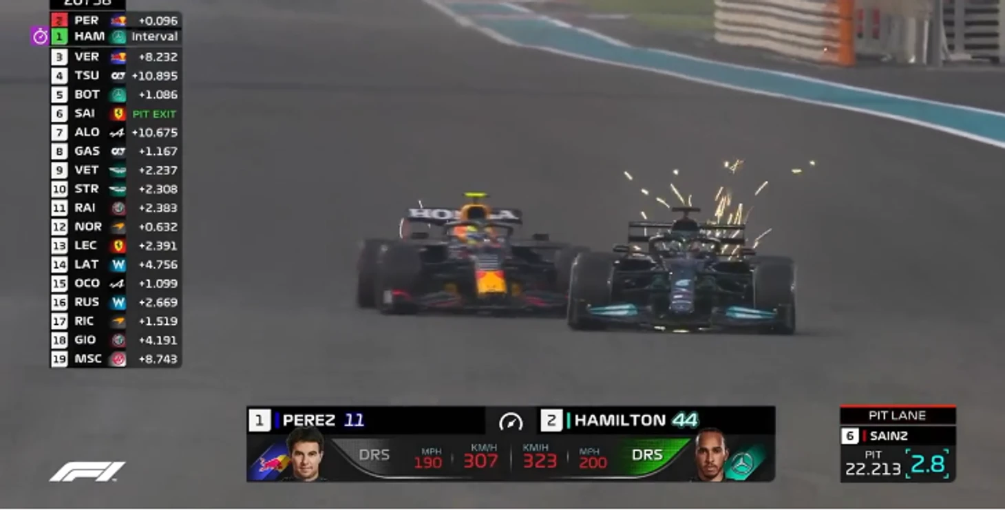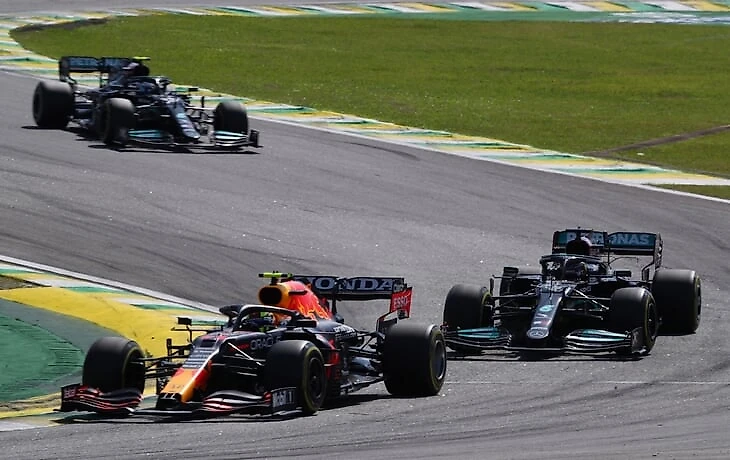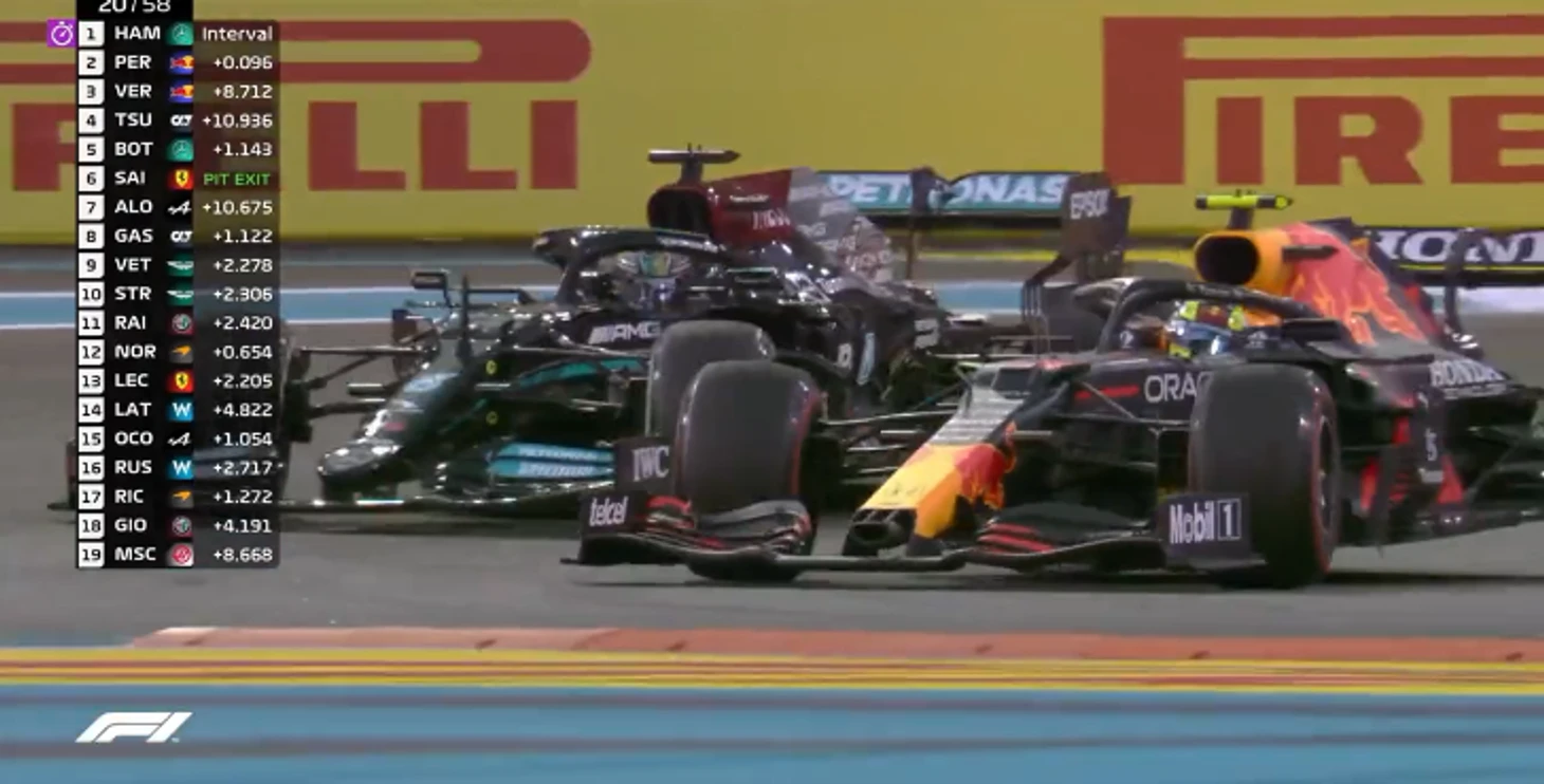 А на стартовой прямой Серхио, кажется, решил схитрить и вообще сперва не разгонялся – в итоге Хэмилтон просто уткнулся в «Ред Булл» и точно потерял импульс разгона из поворота…