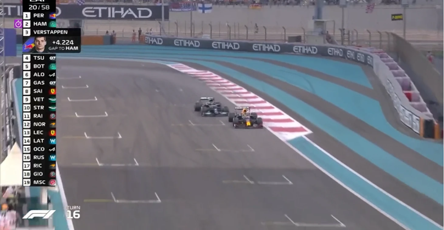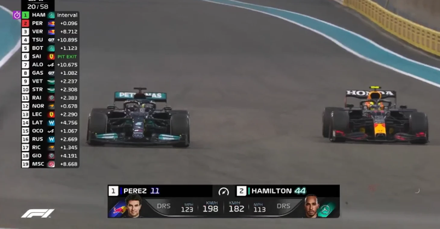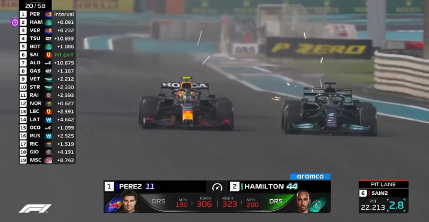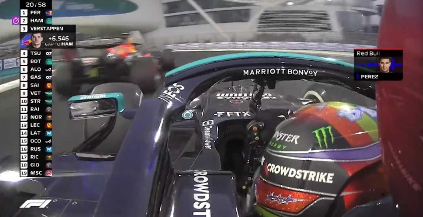 Следующий круг – и Перес совсем осмелел: теперь блокировал и тормозил Льюиса не только на апексе, но уже и на внешней траектории, не давая пользоваться преимуществом более раннего газа…