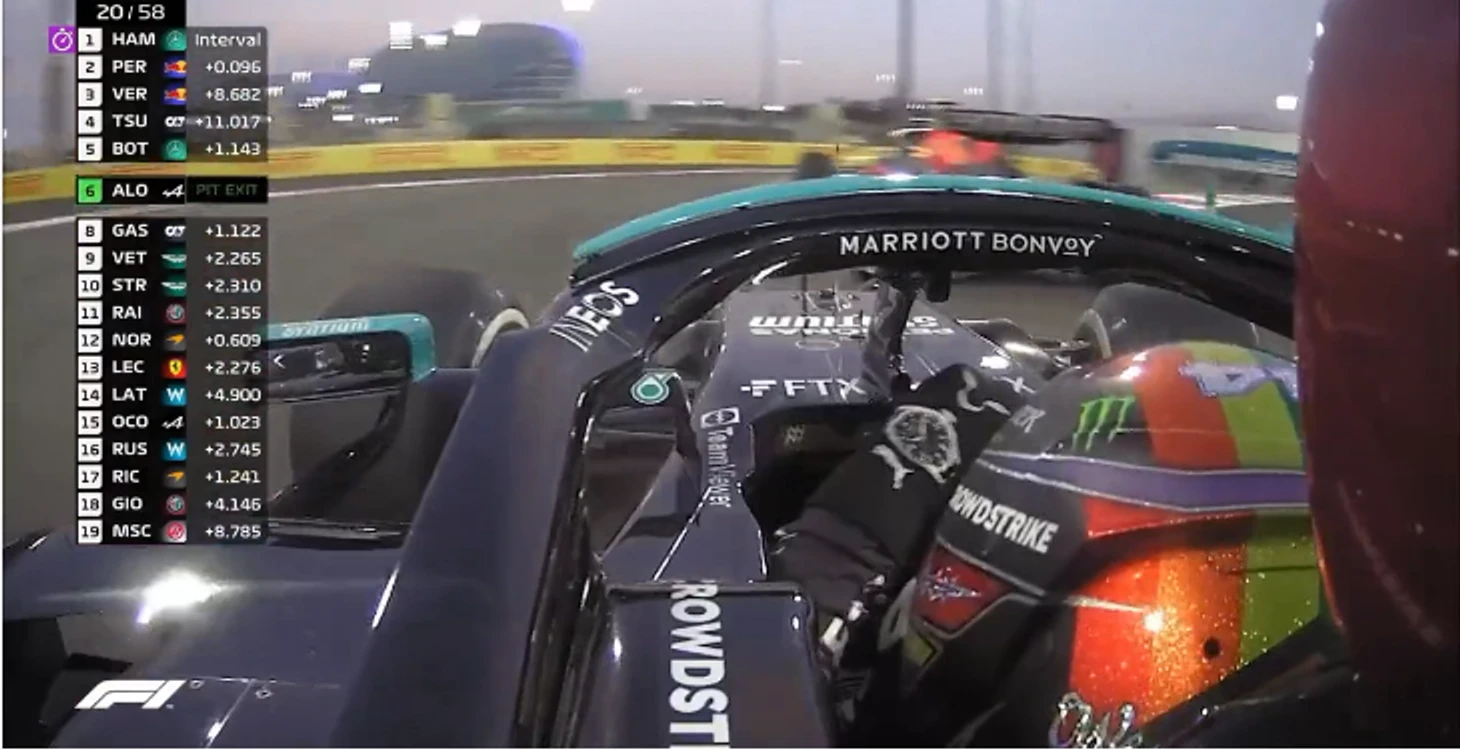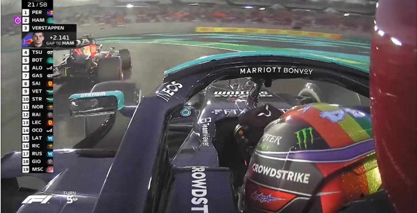 Сработало: «Мерседес» откатился назад, Хэмилтону пришлось снова менять траектории для новой атаки…