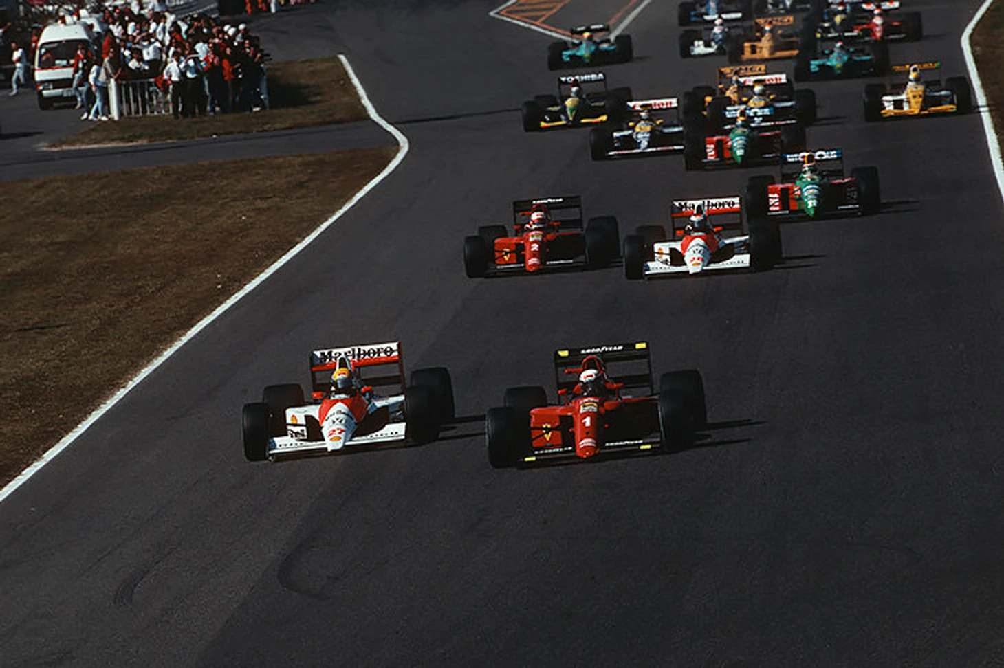 Просту удался лучший старт, чем Сенне, который был на грязной, пыльной внутренней стороне трассы. Не поведя и бровью, Сенна чрезвычайно оптимистично нырнул на внутреннюю траекторию перед первым поворотом. Его левая передняя часть коснулась правой задней части Проста на большой скорости – и две машины вылетели в гравийную ловушку и сошли с дистанции.