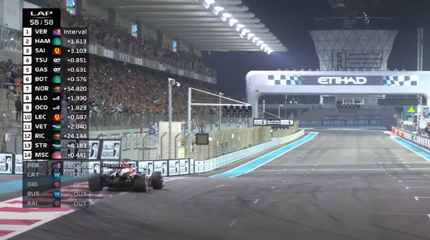 К моменту финиша, наверное, все зрители уже орали (или упали в обморок) – и потому мало кто заметил момент мелкой ошибки Макса на выходе из самого последнего поворота буквально перед клетчатым флагом: заднюю часть «Ред Булл» сорвало с траектории, но новоявленный №1 ее выровнял.