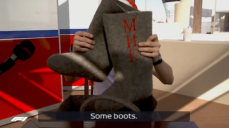 Мик Шумахер получил на Рождество настоящие русские валенки – с именем на кириллице. Спасибо Никите Мазепину