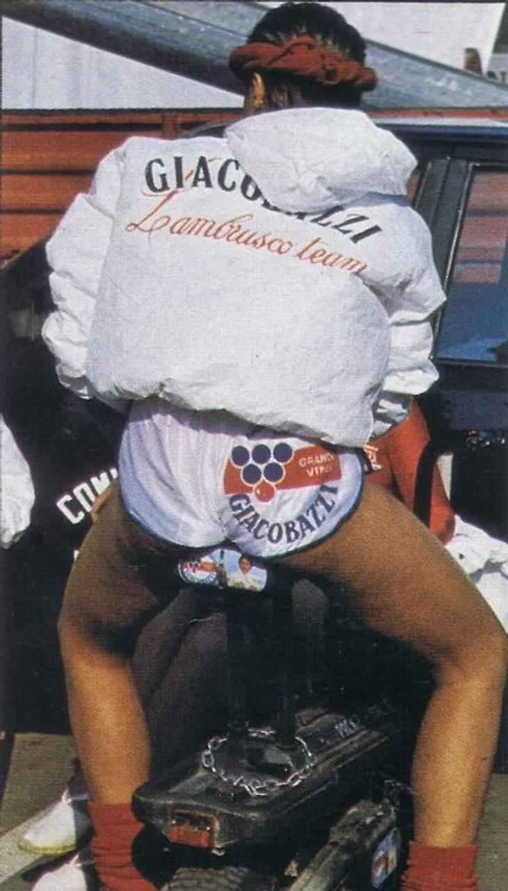 «На Гран-при Сан-Марино [в Имоле] местный производитель вина Giacobazzi нанимает очень сексапильных девушек, чтобы те рекламировали его продукцию.