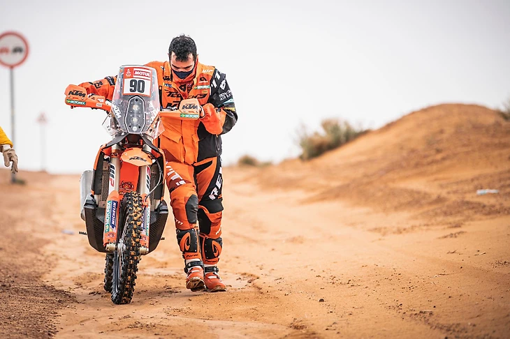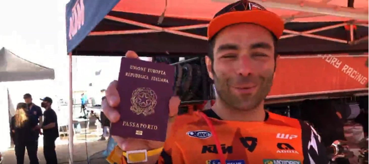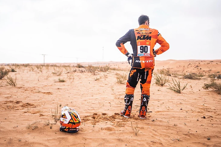 «Я ехал очень хорошо, хотя усталость от предыдущего дня понемногу напоминала о себе, – объяснил после Петруччи в соцсетях. – На 115-м километре я переключился с заднего топливного бака на передний, но вдруг байк просто отключился. Я понял суть проблемы, но у меня не было инструментов для ремонта. Тогда я решил позвонить механикам на бивуак – и тут оказалось, телефона в кармане у меня нет. Еще пропали паспорт, права и наличные деньги. И связаться с командой я уже не мог.