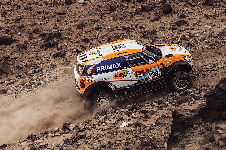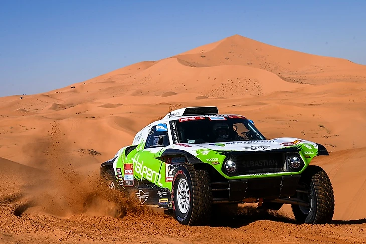 Совсем иначе складывались события с аргентинцем Себастьяном Альперном, который участвует впервые на Дакаре на багги MINI JCW. Первые несколько дней он был очень быстр, но потом покрытие изменилось. Ему неоднократно приходилось останавливаться из-за проколов колёс на каменистой почве. Поскольку он и его штурман Ронни Грау также избежали серьезных ошибок, их экипаж смог удержать свое место в первой десятке в генеральной классификации.