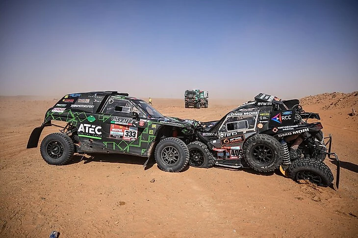 №333 – экипаж Марко Каррара, следовавший 12-м в своем классе T3 (из 43 экипажей). Карякин, в свою очередь, перед стартом спецучастка занимал 8-е место в Т4 и отставал от подиума на два часа. Потому оба райдера нагоняли и атаковали, не хотели терять время, Карякин вообще ехал на первую победу на этапе – но встретился с багги в пустыне.