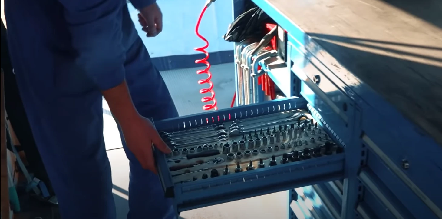 Все инструменты и расходники в мастерской – в идеальном порядке: выложены и структурированы отдельно. Прямо как в паддоках команд «Формулы-1»!