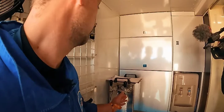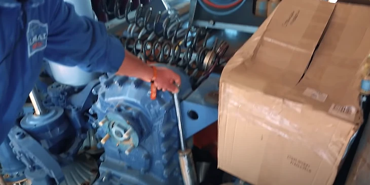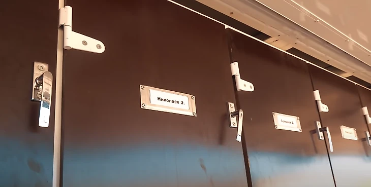 Прежде всего, да: личные ящики и душ правда располагаются прямо рядом с деталями – смотрите, вот отсек, где хранят моторные запчасти…