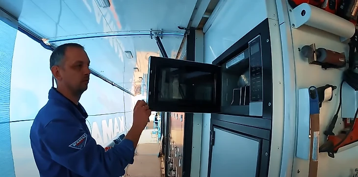А за верстаком, с другой стороны мастерской – микроволновка для разогрева еды…