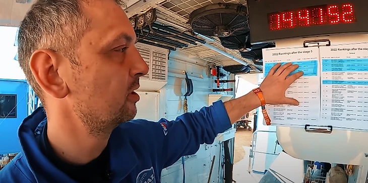 Здесь правят пострадавшие в пустыне, но еще годные детали – или подгоняют под грузовик новые. И здесь же висят распечатки со свежими временами на последних спецучастках и общий зачет – должно быть, для подъема боевого духа: ведь «КАМАЗ» лидирует с первого дня всеми тремя машинами, регулярно забирает все подиумы и еще ни разу в 2022-м не пустил соперников выше третьей позиции.