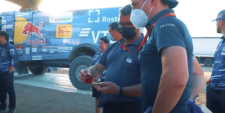 «После девятого этапа и финиша комиссары ФИА пришли на бивуак, чтобы провести измерения, – рассказал ведущий «Путевых заметок» в этом году Богдан Булычев. – Сейчас они собираются замерить ход подвески и проверить, в норме ли он. Проверяется сначала передняя ось, а потом – задняя.
