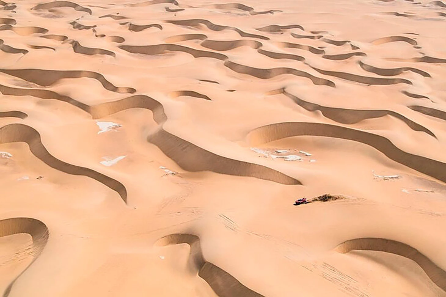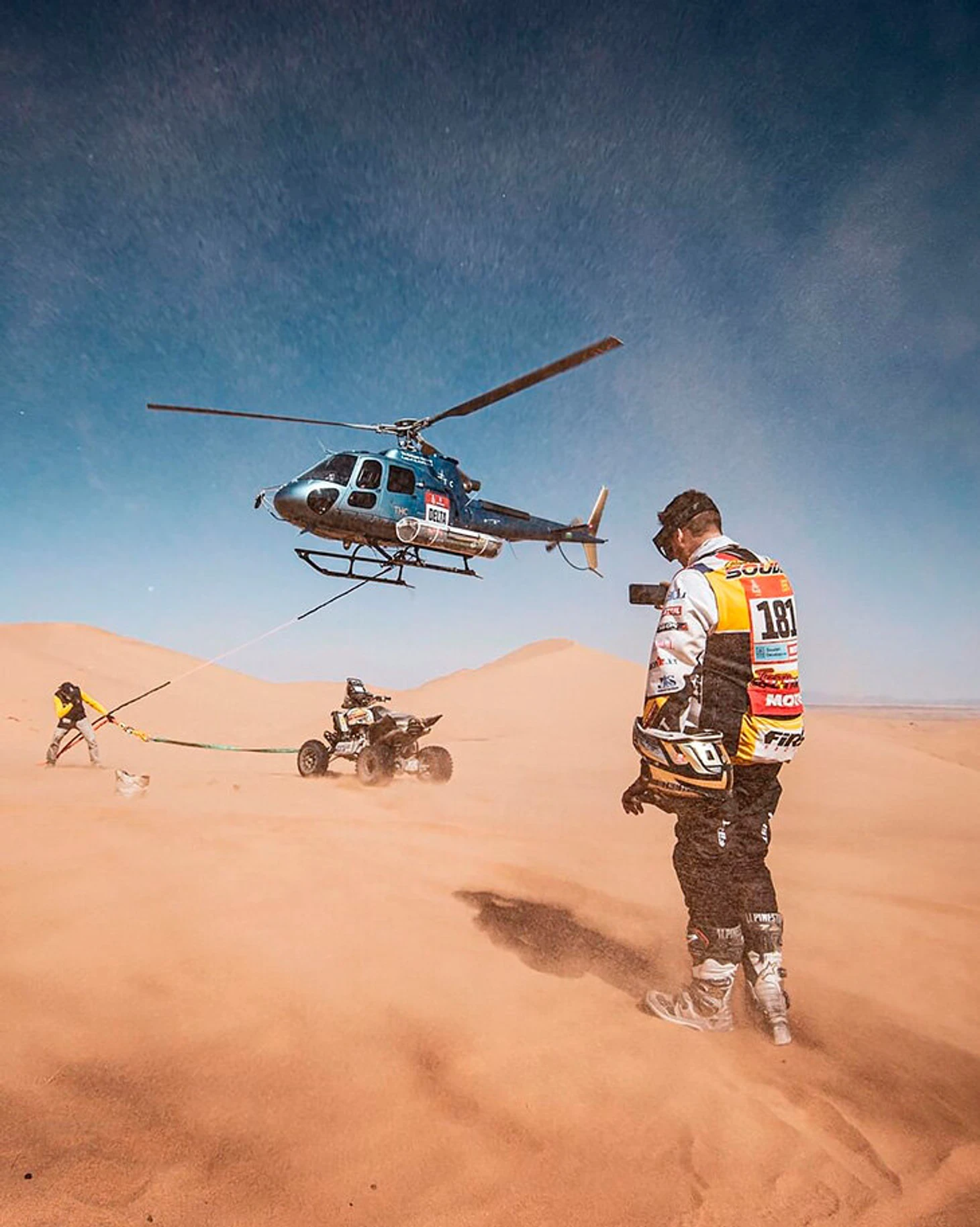 Хорошо, что вертолеты есть: без них мы бы никогда не увидели вот эту сыпучую красоту с десятого спецучастка. Без шуток: один из величайших кадров в истории «Дакара».