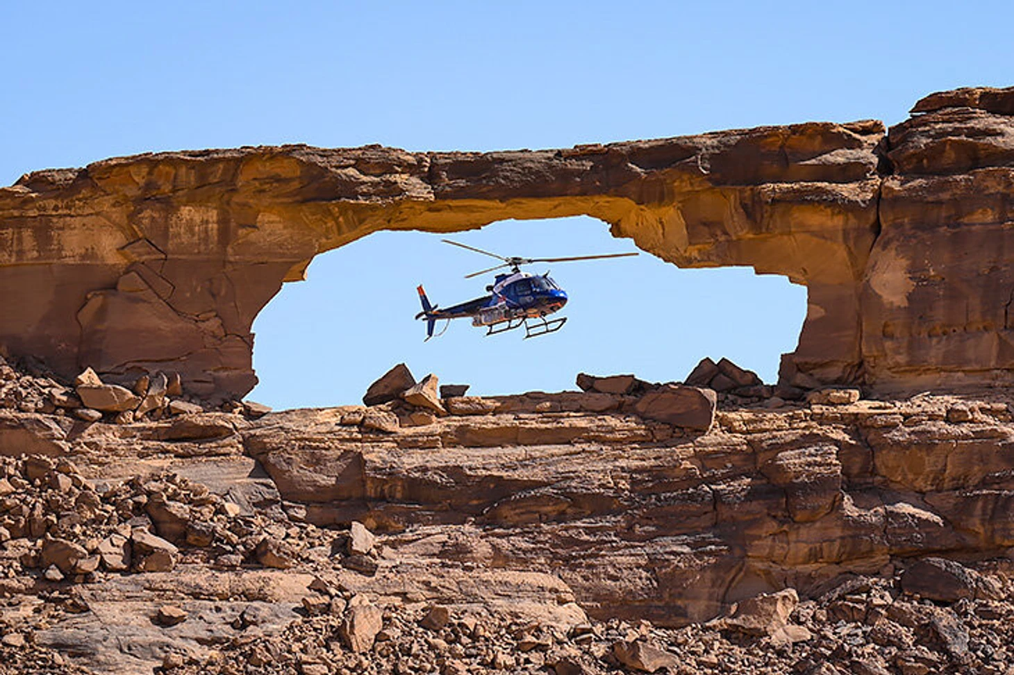 То же место – но с другой стороны: да, на «Дакаре» есть свой босс-вертолет.