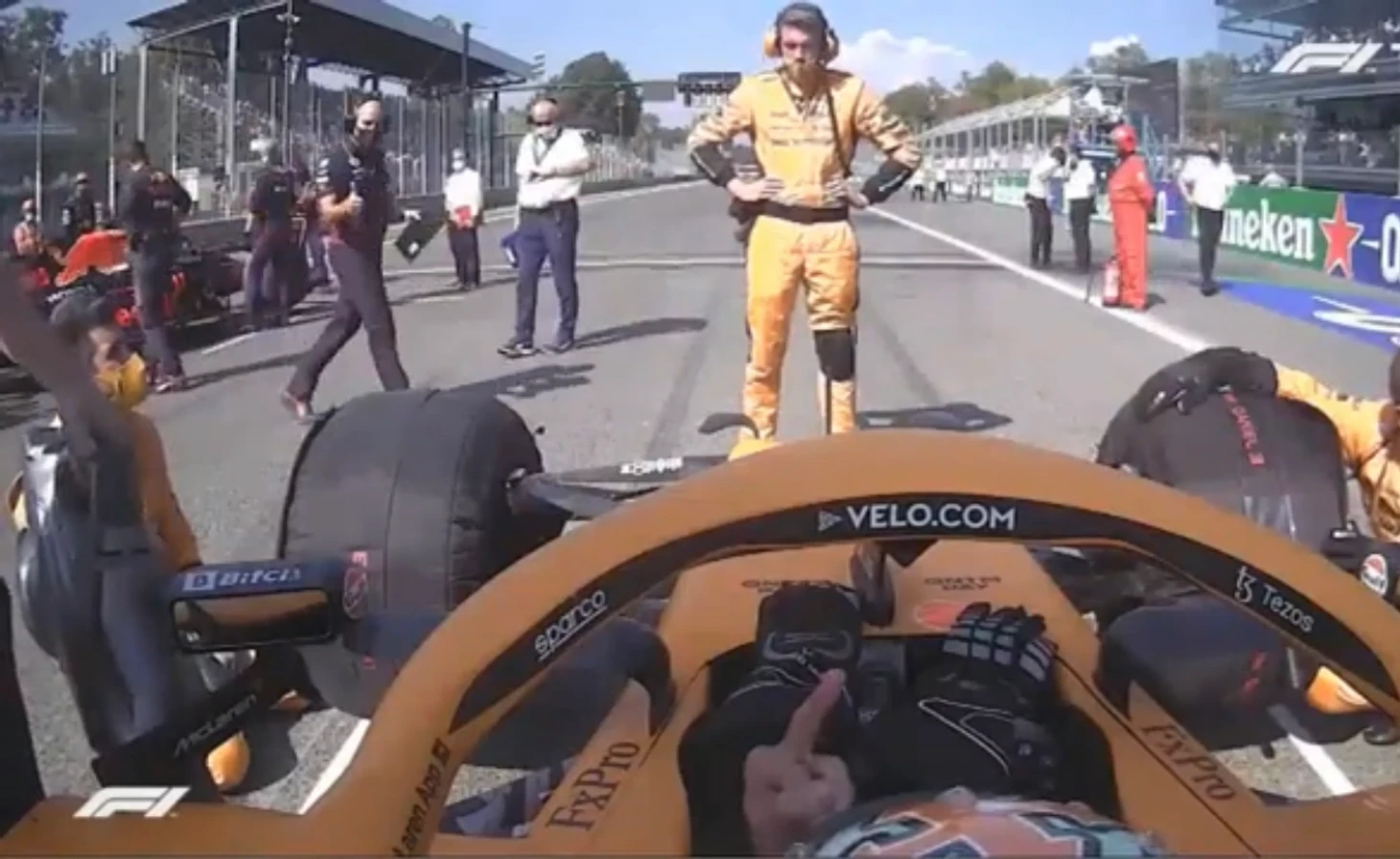 Вечно улыбающийся Риккардо не ограничился лишь одним шуточным обмениванием факами с Пересом. Перед стартом Гран-при Италии, где Дэн стартовал с первого ряда сразу за Ферстаппеном, австралиец продемонстрировал средний палец инженеру Макса Джанпьеро Ламбьязи. А в Монако уже Феттель помешал Риккардо начать быстрый круг, и хоть трафик считается привычной проблемой Монте-Карло, австралиец продемонстрировал средний палец немцу в догонку.