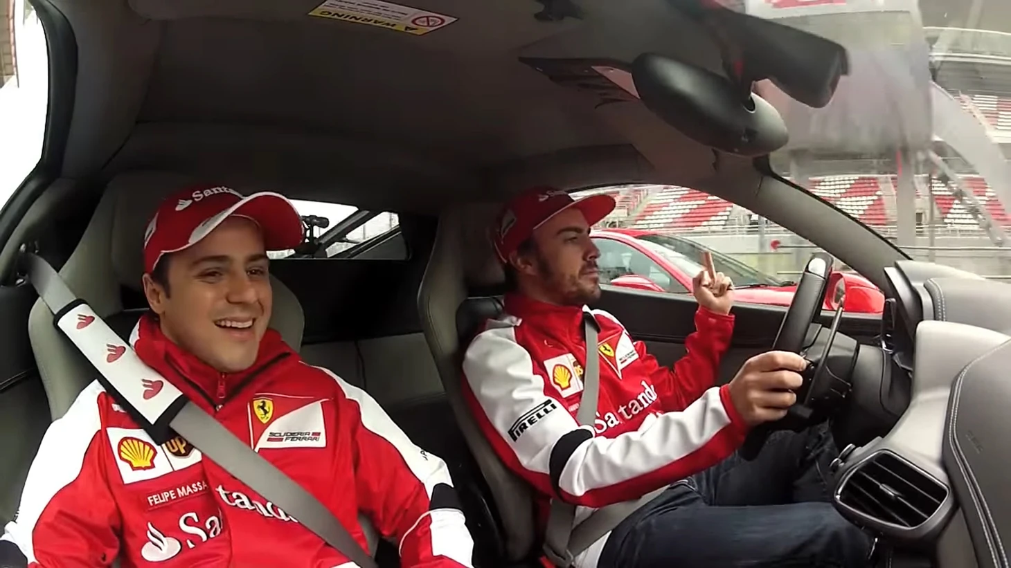 А вот в Испании во время интервью Дэна Риккардо на пит-лейне два пилота в шутку обменялись «приветственными» жестами.