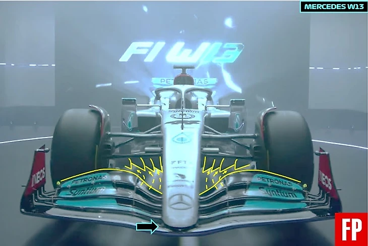 Команда, королева турбогибридной эры, представила миру автомобиль, предназначенный для охоты за девятым подряд Кубком конструкторов, а также для реванша после поражения в личном зачете в Абу-Даби. W13 знаменует собой возвращение серебристой ливреи на одноместные болиды, но хроматический аспект не будет иметь значения в испытаниях на трассе. Определенно, больший интерес представляет подход команды из Брэкли к новому регламенту, заметный, поскольку «Мерседес» представила реальный одноместный автомобиль 2022 года, который будет участвовать в следующем чемпионате, в отличие от соперников из «Ред Булл», которые предпочли сохранить тайну, представив миру стандартную модель «ФИА». Среди представленных на данный момент автомобилей W13 является машиной, которая наименее какими-либо чертами связана с автомобилями прошлого поколения, предлагая различные технические концепции, действовавшие в прошлых регламентных циклах, которые способствовали успеху «Серебряных стрел». Таким образом, «Мерседес» предложил полностью противоположную философию, чем у «Феррари», стремясь, по возможности, к преемственности даже в нынешнем революционном контексте, и этот подход может в равной степени оказаться успешным.