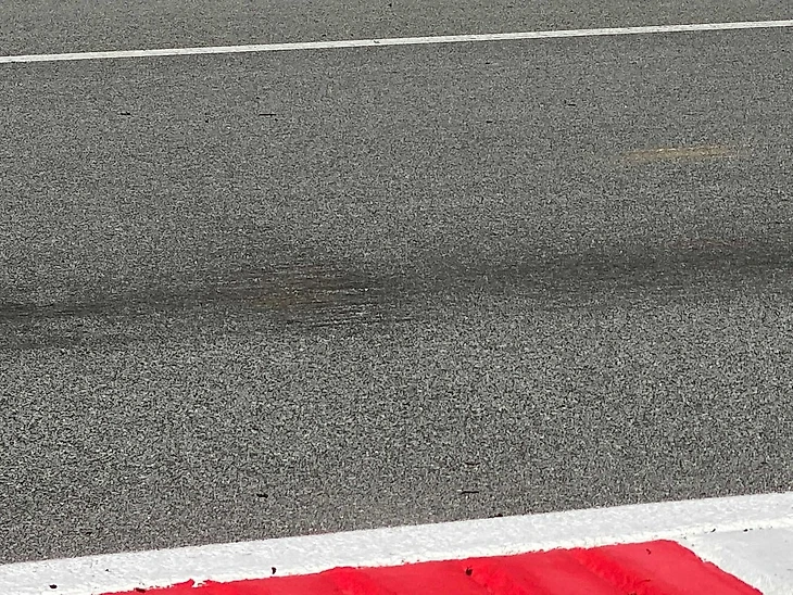 Асфальт на прямых после дня поездок выглядит вот так: