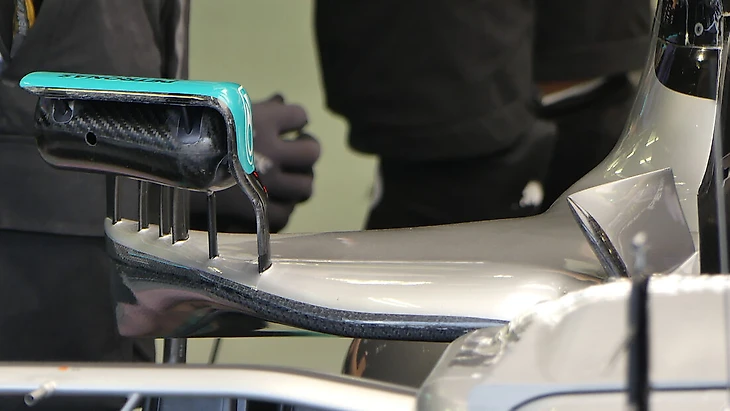 Да, правила требуют, чтобы сами структуры безопасности непременно покрывали корпусом, но «Мерседес» их и не оголяет: балка со всех сторон обнесена тем же материалом, что и любая другая часть шасси. Формально все по регламенту.