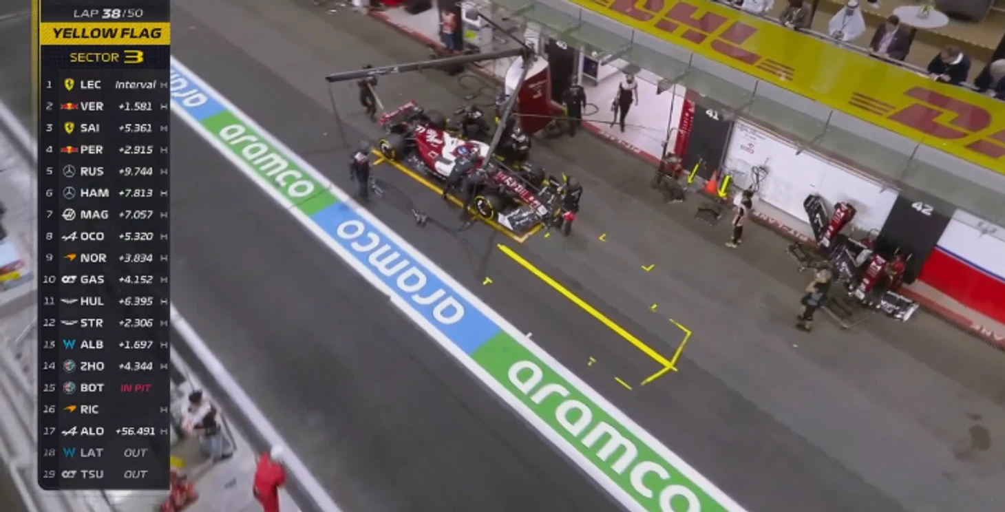 А на пит-лейн тем временем в боксы закатывали отказавший «Альфа Ромео» Валттери Боттаса!