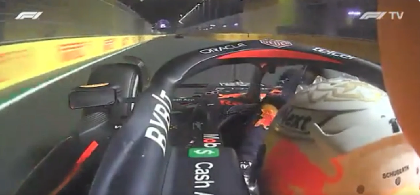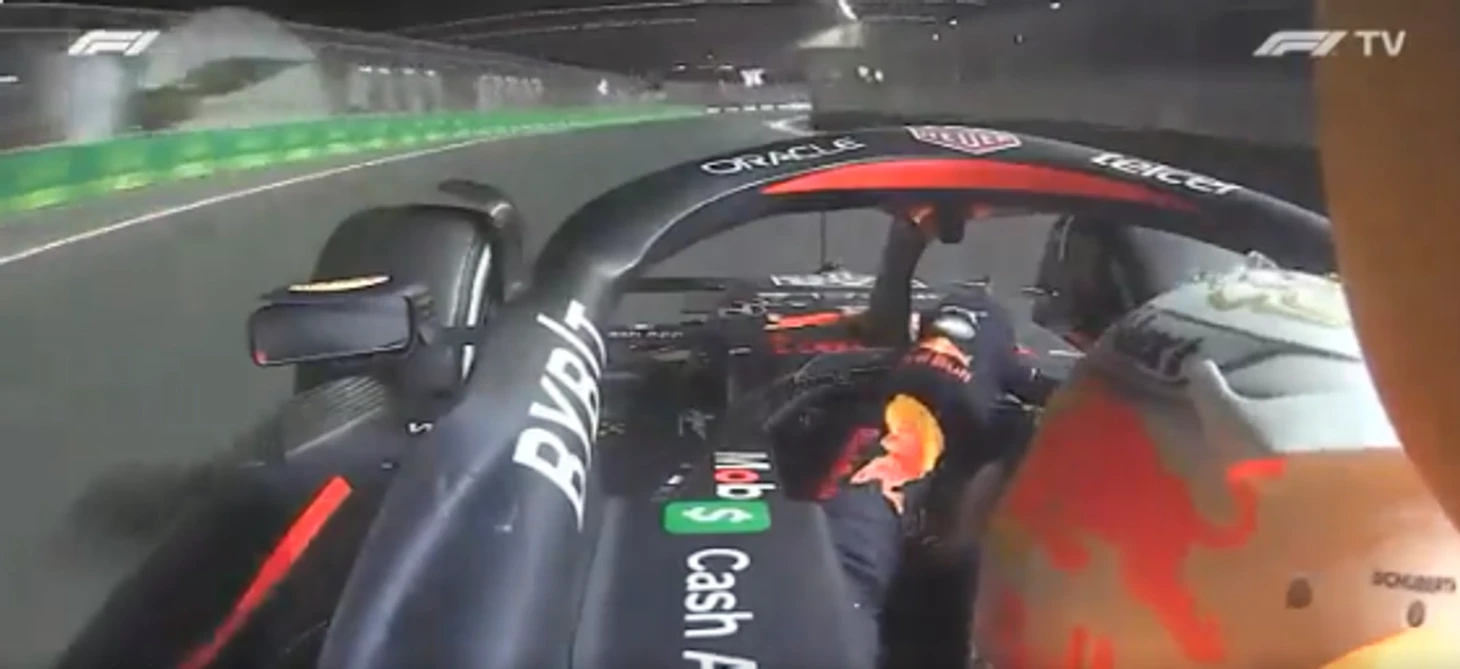 Только на четвертой – в конце круга – у Макса наконец вышло убрать мусор с RB18. И да, он фактически несколько километров гнал на скорости около 300 км/ч, управляя машиной одной рукой.