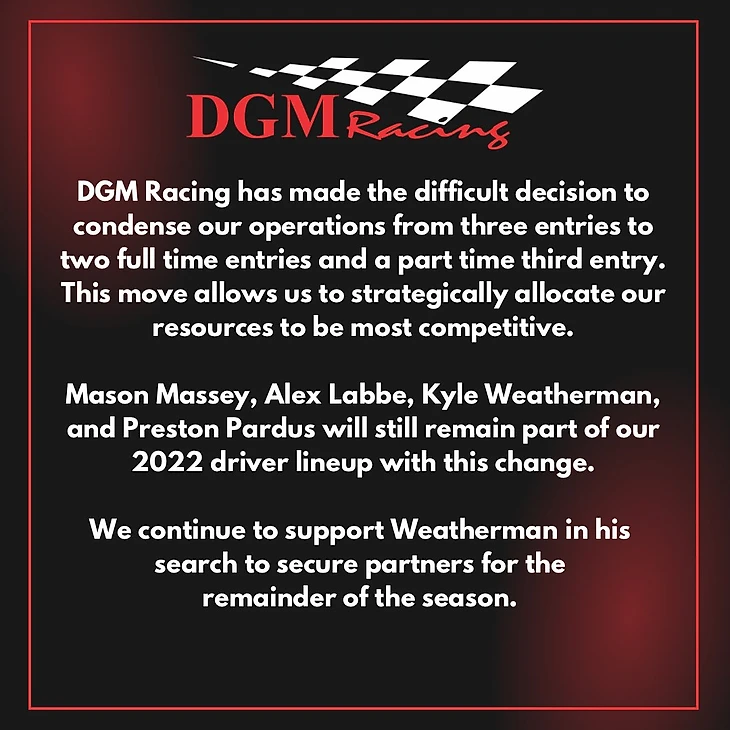 В 2022-м Алекса уже не спешили объявлять. Никаких красивых презентаций в стиле retrowave. Основные машины захватили какие-то парт-таймеры, а Лаббе всплыл лишь перед самой Дейтоной, получив какие-то невнятные объяснения и неясный статус. Алекс, по иерархии команды, оказался ниже Кайла Уэзермана и Мэйсона Мэсси, получивших главные машины DGM Racing. Он не отобрался на гонку в Дейтоне и демонстрировал посредственные выступления.