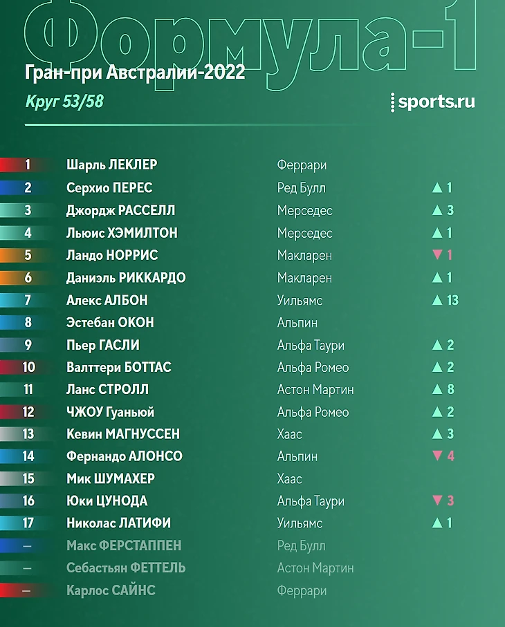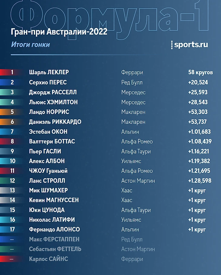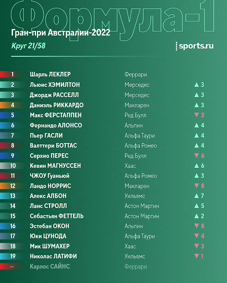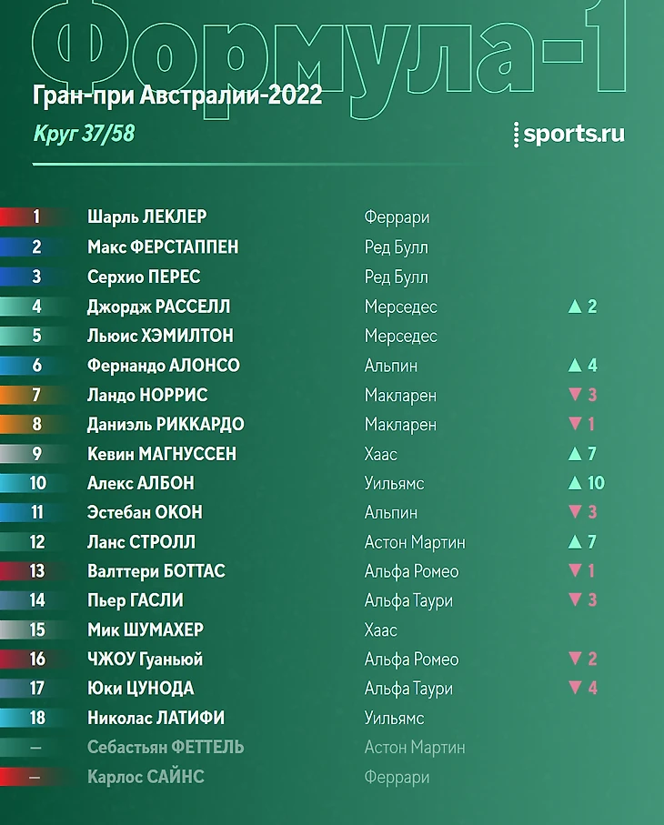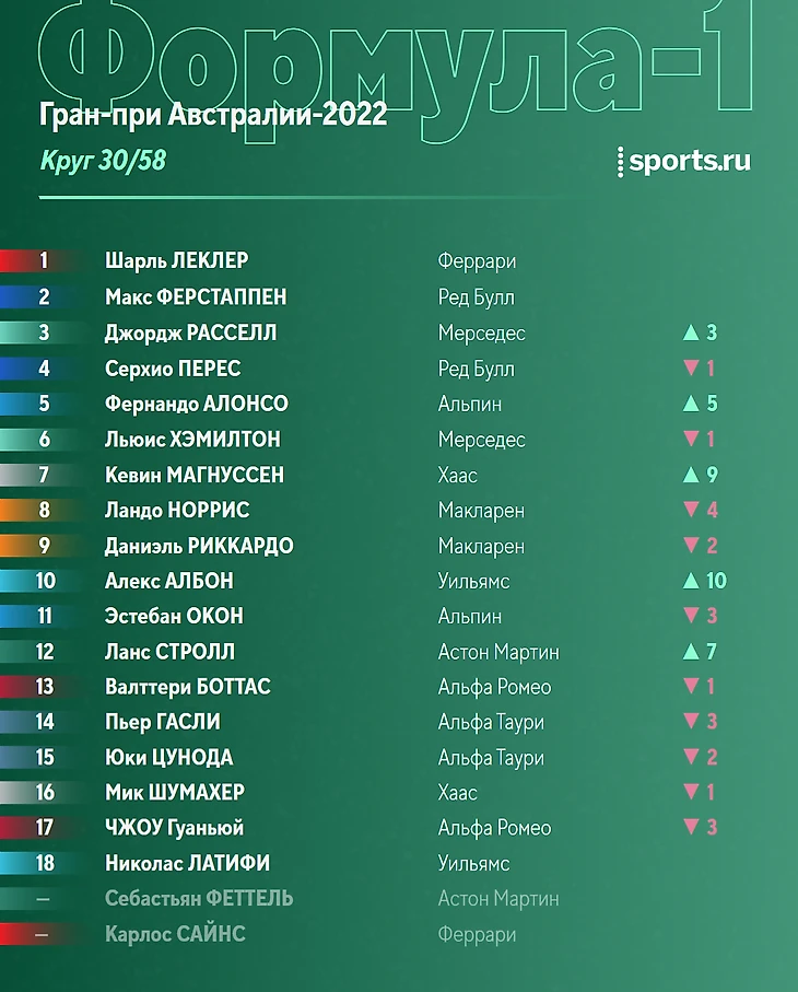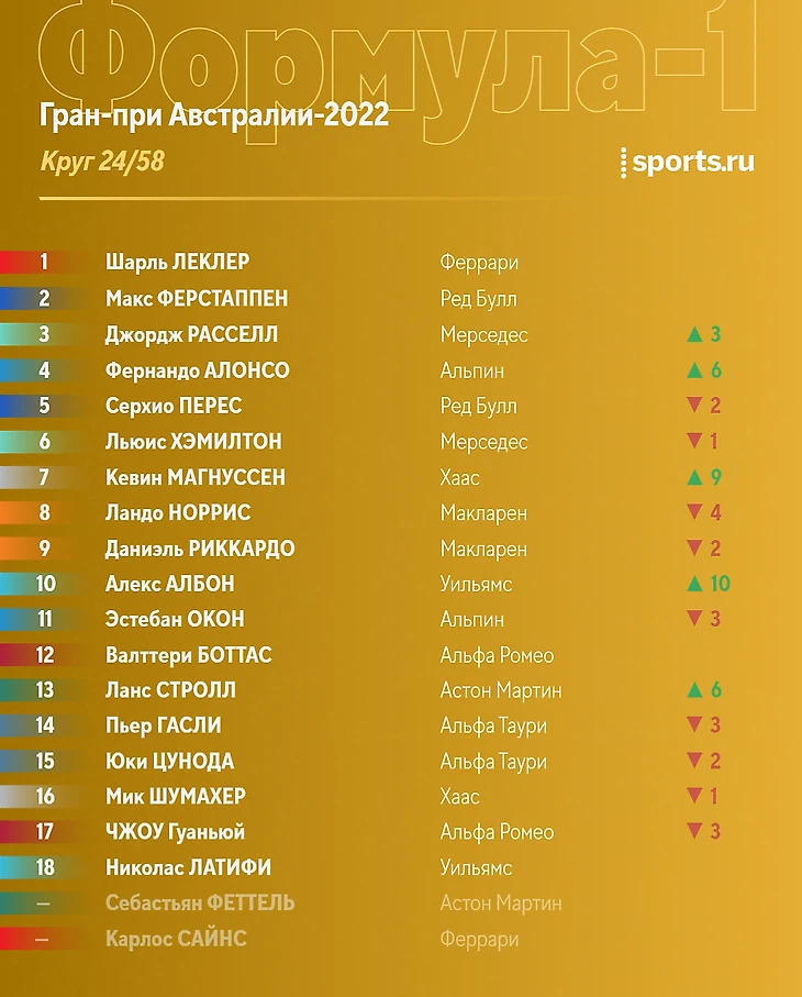 3. «Мерседес» по-прежнему далек от лидеров, но все-таки класс команды и пилотов сказывается - третье и четвертое места Расселла и Хэмилтона - вполне достойное завершение Гран-при, учитывая трудности на старте сезона.