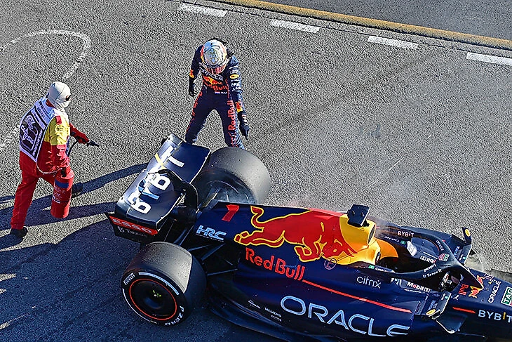 Шефы «Ред Булл» списали сход на сбой в топливной системе и утечку – и ведь на первом Гран-при года в Бахрейне ситуация обстояла примерно так же. В итоге у Макса вместо победы и двух подиумов лишь один финиш, огромное отставание от Леклера и грандиозное непонимание происходящего с RB18.