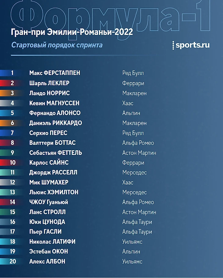 23 апреля в Имоле состоится спринт перед Гран-при Эмилии-Романьи, четвертым этапом «Формулы-1» сезона-2022.