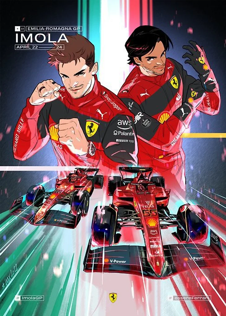 А «Феррари» и вовсе выложили постер перед Гран-при Эмилии-Романьи с Шарлем в бойцовской стойке и часами на запястье.